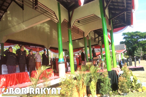 Pantauan oborrakyat.co.id, Ketua DPRD Kabupaten Bondowoso, Achmad Dhafir dengan khidmat membacakan naskah proklamasi.