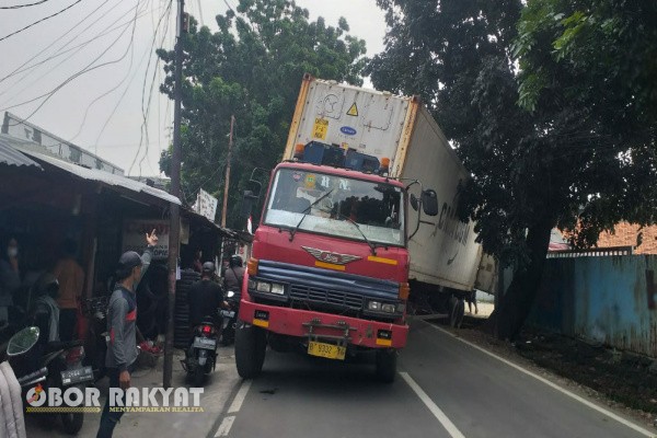 Jakarta, Obor Rakyat – Kemacetan parah terjadi di Jalan Ciracas, Kelurahan Rambutan, Jakarta Timur, pada Kamis pagi (7/8/2025), akibat sebuah truk kontainer yang terjeblos ke dalam saluran air. Peristiwa ini menyebabkan muatan peti kemas truk melintang dan menutup hampir seluruh badan jalan.