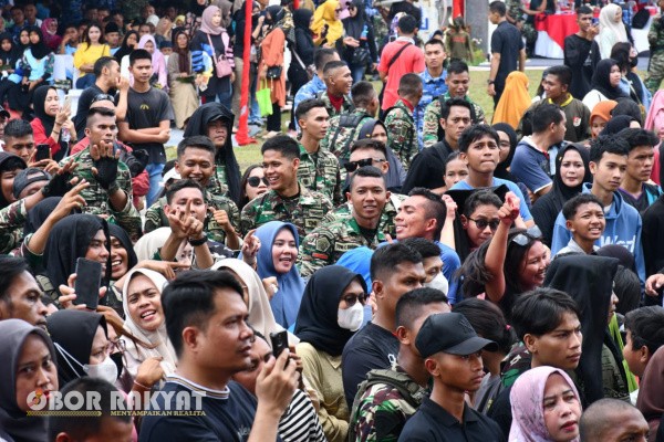 Ribuan warga dan prajurit TNI larut dalam suasana penuh suka cita, menikmati penampilan artis nasional seperti Wika Salim dan Duo Serigala.