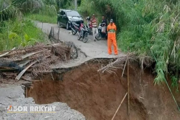 “Tanah terus bergerak, dan jalan tinggal menyisakan sedikit bagian yang belum amblas. Di bawahnya jurang yang cukup dalam. Ini sangat berbahaya,” jelasnya.