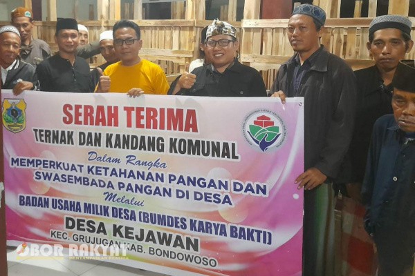 Bondowoso, Obor Rakyat – Pemerintah Desa (Pemdes) Kejawan, Kecamatan Grujugan, Kabupaten Bondowoso, menyalurkan bantuan ternak kambing dan kandang komunal kepada Badan Usaha Milik Desa (BUMDes) Karya Bakti sebagai bagian dari program ketahanan pangan berbasis Dana Desa (DD) tahun anggaran 2025.