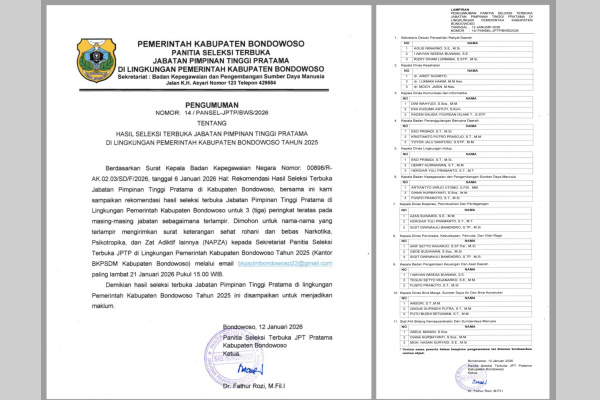 Para aktivis berharap BKN dapat menindaklanjuti laporan tersebut secara objektif dan menyeluruh, guna memastikan proses seleksi JPT Pratama di Pemkab Bondowoso benar-benar berjalan sesuai ketentuan hukum dan prinsip merit sistem ASN. (*)